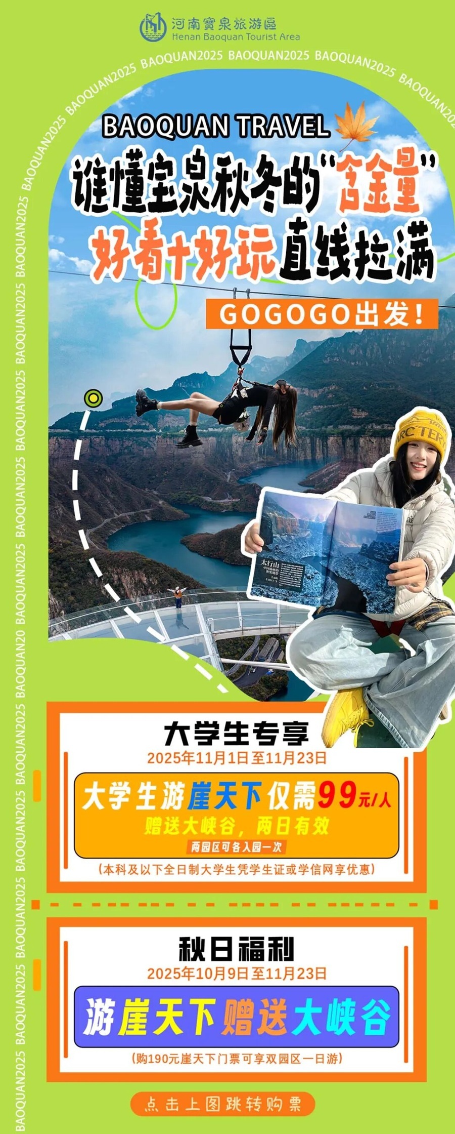 3.本次活动与社会上发的宝泉旅行团的玩法都不一样,这是纯粹为年轻人设计的线路;