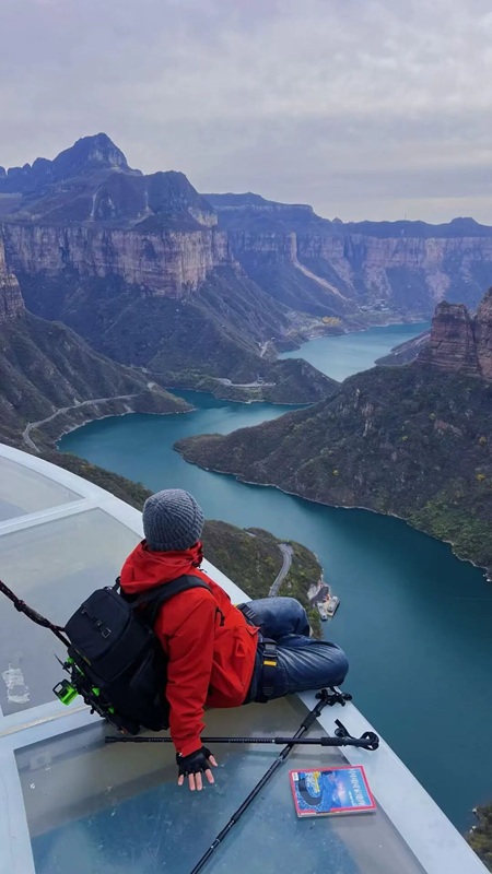 6、飞拉达分一期和二期,一期为云崖漫步,在丹崖天路上,攀爬多,适合户外运动爱好者,中途有双心平台,走钢丝,全程可以看到绝美风光“太行之心”;二期为悬天栈道,在祥云观景台往观光车方向200米,路线攀爬较少,有三段溜索(体验感超强),可双向通行(“超车”自由),有天梯等,适合喜欢体验新鲜事物的朋友。