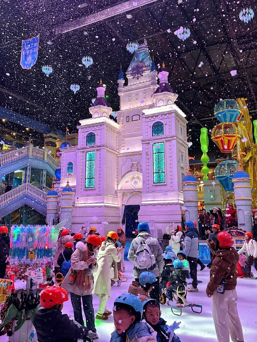 里面修建了聚宝财神、美人鱼岛、一帆风顺等冰雕艺术作品,打造出一个梦幻冰雪童话世界。